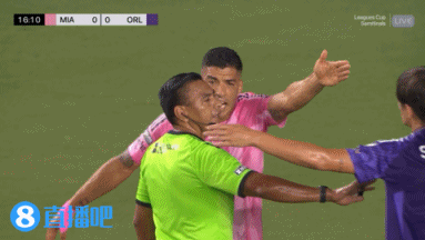 第13分钟,苏亚雷斯跑位捂脸倒地,迈阿密球员投诉对方恶意击打。↓